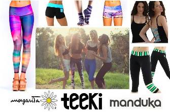 Yoga Apparel  We carry top quality designer fitness & yoga apparel including Teeki, Margarita, ToeSox, Manduka & more!  FREE S&H on all Orders over $75