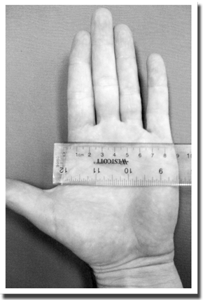 Measure your hand for the right size Grip Gloves Using a ruler, measure the width of your palm from the base of your little finger to the base of your index finger. If your hand measures between: