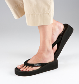 ToeSox Five Toe Sandals encourage toes to spread and are more comfortable than traditional toe spreaders. The molded foot bed of the sandals cushions and supports the foot for added comfort and safety. Encourage your toes to spread for increased foot strength and blood circulation. Four posts naturally align toes and feet for proper bone alignment to help correct a variety of foot, back and leg ailments. Spreading your toes. Available in five colors. Breathable vegan leather strap. Women whole shoe sizes 5-10 (Helpful hint: if you're a half size, round up). |