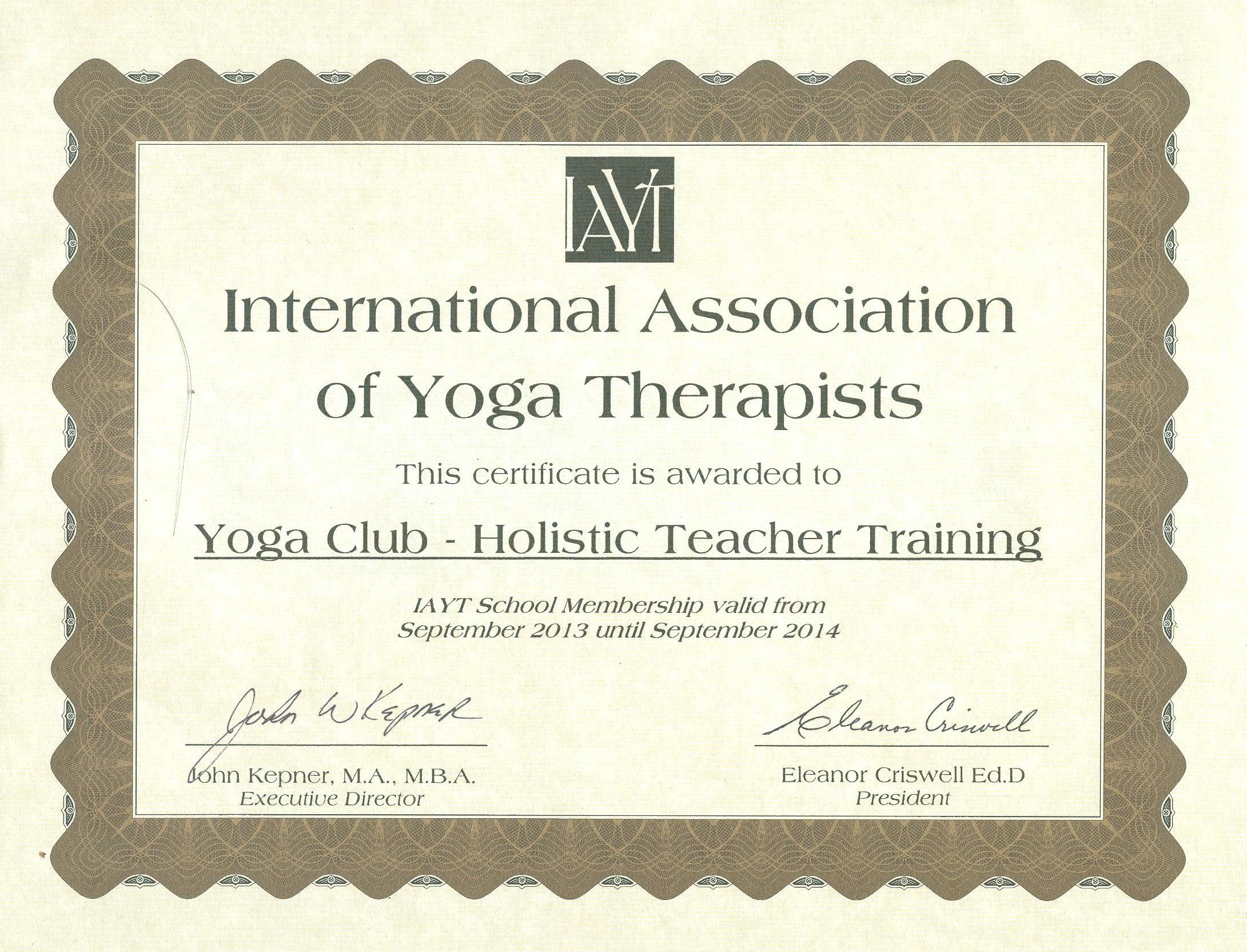 6 . For those pursuing IAYT designation, please review and sign the enrollment form. E-mail a copy, or picture of a signed copy, prior to attending your first immersion to chryskub@yogaclub.us.Questions? If you have any questions please feel free to contact our Program Director Chrys Kub, Licensed Physical Therapist, Yoga Therapist, E-RYT 500 by e-mail at chryskub@yogaclub.us or by phone at 704-577-9282. Yoga Club is a Yoga Alliance Registered Yoga School, RYS Yoga Club is both a 200 Hour and 500 Hour Registered Yoga School. Our programs are registered with Yoga Alliance such that you can receive your RYT status post graduation. To find out more about our program please contact chryskub@yogaclub.us International Association of Yoga Therapists Member School, IAYT Yoga Club's Holistic Yoga Therapy Institute is also a member school with the International Association of Yoga Therapists offering a Therapeutic Yoga Teacher Training Program at both the 200 Hour and 500 Hour levels. We have submitted an application to IAYT for accreditation of our yoga therapy program, and will be able to provide information on our status after IAYT completes its review process. To find out more about our program please contact chryskub@yogaclub.us To register simply fill out the application and on any e-mail headers that you are applying for the Therapeutic Yoga Training Program. We look forward to having you join us!Continuing Education Credits ("CEC's) Each of the weekends included in this program are led by an E-RYT (or an Experienced Registered Yoga Instructor). As such, each weekend training is eligible for CEC's with Yoga Alliance. For more information about CEC's please visit the Yoga Alliance website at http://www.yogaalliance.org/content/continuing-education-units-requirements